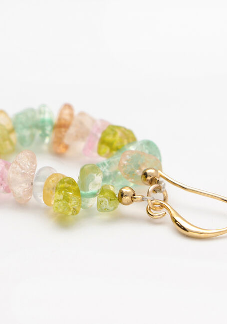 Mooie pastelkleurige oorbellen met goude elementen. Draagt fijn en is niet te zwaar