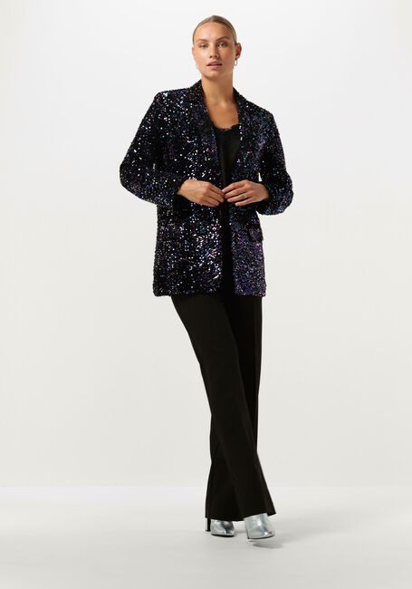Met de NV-CHRISTINE GLITTER VELVET BLAZER van NOTRE-V ben jij het stralende middelpunt op elk feestje! Deze kleurrijke blazer is perfect voor dames die willen schitteren. De buitenkant is gemaakt van pailletten en heeft een zwarte, velvet stof, waardoor je een echte eyecatcher bent. De binnenkant is van polyester, wat zorgt voor een comfortabele pasvorm. Combineer deze blazer met een zwarte skinny jeans en een paar stijlvolle hakken voor een feestelijke look. Of draag hem over een little black dress voor een extra touch of glamour. Met deze blazer ben jij klaar om te stralen!