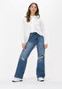 Wijdere blouse, die achter langer valt dan voren. Het is echt een wijd model, dus hier moet je wel van houden.