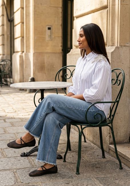 Witte JANSEN AMSTERDAM Blouses PARISA BLOUSE CS 772 STRIPE 3/4 SLEEVE SHINY STONES EMBELLISSEMENT AT SHOULDER - large