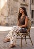 Omarm de retrostijl met de GRACE SS2623015. Deze wijde broek, crèmekleurig met bruine stippen, heeft een hoge taille en plooien die je figuur mooi laten uitkomen. De luchtige stof maakt de broek ideaal voor dames op een zonnige lentedag of een zwoele zomeravond. Draag hem als je door de stad flaneert of geniet van een picknick in het park. Combineer de wijde pijpen met een korte top of een blouse en sandalen.