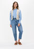 Maatadvies Isabelle is 1 meter 73 lang en draagt maat 27. De pasvorm is Mom.