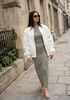 Maatadvies Zohra is 1 meter 70 lang en draagt maat 36. De pasvorm is Aansluitend.