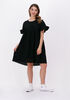 Wijd model jurkje, goede lengte, niet te kort. Ik weet niet zeker of de stof erg zal kreukelen, maar ben er wel blij mee