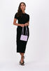 Materiaal is heel stijf, maar dat zorgt er ook wel weer voor dat hij een beetje shaping is. Verder mooie basis zwarte jurk en net wat extra door de touwtjes aan de zijkant die je iets kunt aantrekken.