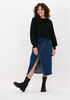 Prachtige lange denim rok! Door de overslag zie je een stukje been, maar hij valt niet te wijd open bij het lopen.