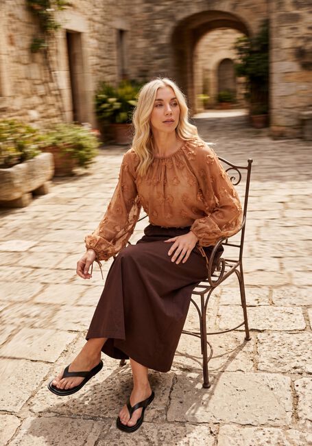 Ontdek de charme van de SKIRT TAFT LIGHT van SUMMUM, een bruine maxirok die perfect is voor de zonnige dagen van lente en zomer. Flaneer langs de boulevard of geniet van een picknick in het park met deze elegante rok. De luchtige stof en vloeiende pasvorm zorgen voor ultiem draagcomfort. Combineer met een lichte blouse of een casual T-shirt voor een moeiteloze, stijlvolle look. Deze rok is een veelzijdige aanvulling op je garderobe en past perfect bij sandalen of sneakers voor een ontspannen dagje uit. Laat je inspireren door de eenvoud en elegantie van deze must-have maxirok.