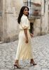 Ontdek de charme van de NV-HILDEGARD midi rok in stralend geel. Perfect voor zonnige lentedagen en warme zomermiddagen. Flaneer langs de boulevard of geniet van een picknick in het park. Deze rok van NOTRE-V combineert moeiteloos met een luchtige witte blouse of een casual denim jasje. De vloeiende stof en levendige kleur zorgen voor een frisse, vrouwelijke uitstraling. Ideaal voor dames die houden van stijl en comfort. Voeg een paar sandalen toe voor een complete look die zowel elegant als ontspannen is. Laat de zon maar schijnen!