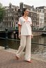 Maatadvies Larissa is 1 meter 74 lang en draagt maat S. De pasvorm is Oversized.