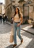 Maatadvies Larissa is 1 meter 74 lang en draagt maat S. De pasvorm is Aansluitend.