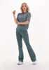 Het is een grijs groene kleur. Ik heb normaal 's maar XS is groot genoeg. Daar het niet paste bij mijn rok heb ik het retour verzonden.