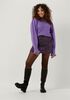 Mooie warme kleur lila, trui valt wat korter, is opengewerkt en heeft mooie lange manchetten met een ruches aan de mouw. Heel blij mee