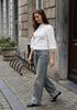 Maatadvies Isabelle is 1 meter 73 lang en draagt maat 36. De pasvorm is Regular fit.