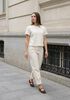 Maatadvies Isabelle is 1 meter 73 lang en draagt maat S. De pasvorm is Regular fit.