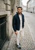 Maatadvies Damian is 1 meter 87 lang en draagt maat L. De pasvorm is Regular fit.