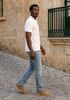 Maatadvies Ibrahim is 1 meter 88 lang en draagt maat 32. De pasvorm is Slim fit.
