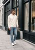 Maatadvies Damian is 1 meter 87 lang en draagt maat 32. De pasvorm is Slim fit.