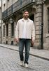 Maatadvies Damian is 1 meter 87 lang en draagt maat L. De pasvorm is Regular fit.