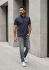 Maatadvies Damian is 1 meter 87 lang en draagt maat L. De pasvorm is Regular fit.