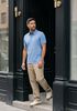 Maatadvies Damian is 1 meter 87 lang en draagt maat L. De pasvorm is Regular fit.