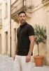 Maatadvies Damian is 1 meter 87 lang en draagt maat L. De pasvorm is Regular fit.