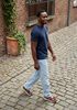 Maatadvies Ibrahim is 1 meter 88 lang en draagt maat L. De pasvorm is Regular fit.