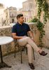 Maatadvies Damian is 1 meter 87 lang en draagt maat L. De pasvorm is Regular fit.