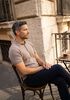 Maatadvies Damian is 1 meter 87 lang en draagt maat L. De pasvorm is Regular fit.