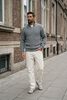 Maatadvies Damian is 1 meter 87 lang en draagt maat M/L. De pasvorm is Regular fit.