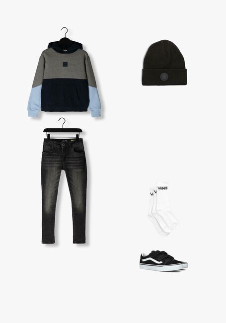 Deze populaire lage sneaker JN OLD SKOOL is één van de bekendste modellen van het merk Vans. Deze zwarte skateschoen is uitgevoerd in suède en canvas en heeft een voering van textiel met een vast voetbed. Opvallende details zijn de bekende leren lijn op de zijkant en het merklabel op de hiel. De neus is verstevigd met een stootrand en beschermt tegen slijtage. De gevoerde enkelkraag biedt ondersteuning en flexibiliteit en de rubberen zool met wafelprofiel biedt grip bij het lopen. En met de handige dubbele klittenbandsluiting trekt je ze super snel zelf aan, ideaal!